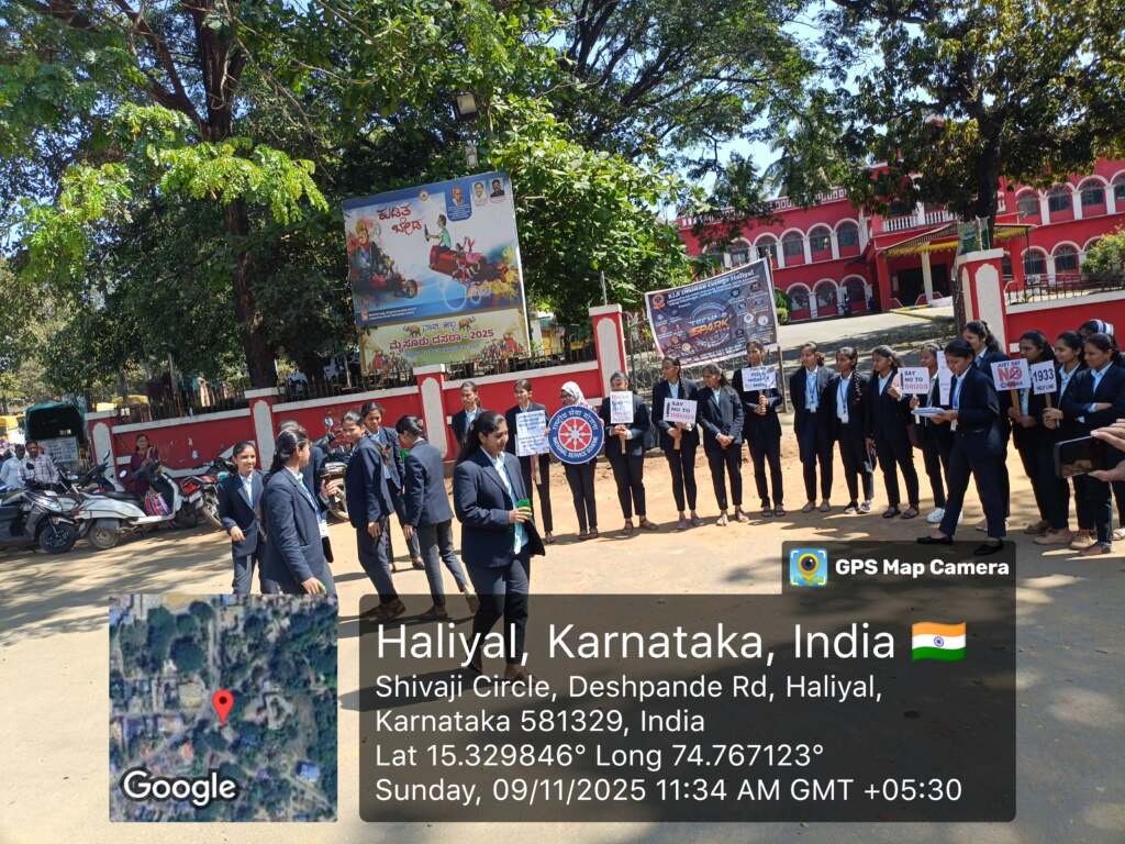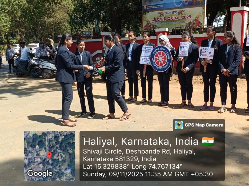 2025ರ ನವೆಂಬರ್ 9ರಂದು (ಭಾನುವಾರ) ಬೆಳಿಗ್ಗೆ 11:00 ಗಂಟೆಗೆ, ಎನ್.ಎಸ್.ಎಸ್. (NSS) ಮಹಿಳಾ ಸ್ವಯಂಸೇವಕಿಯರು ಹಳಿಯಾಳದ ಶಿವಾಜಿ ಸರ್ಕಲ್ನಲ್ಲಿ “Say No to Drugs” ಎಂಬ ವಿಷಯದ ಮೇಲೆ ನಾಟಕವನ್ನು ಪ್ರದರ್ಶಿಸಿದರು.